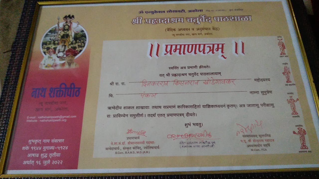 वे. मु.पंकज खोडेगावकरवरद. गणेश मंदिर समर्थ नगर संभाजी नगर. 19 वर्षा पासून वरदगणेश मंदिरात मुख्य अर्चक या पदावर काम करत आहे